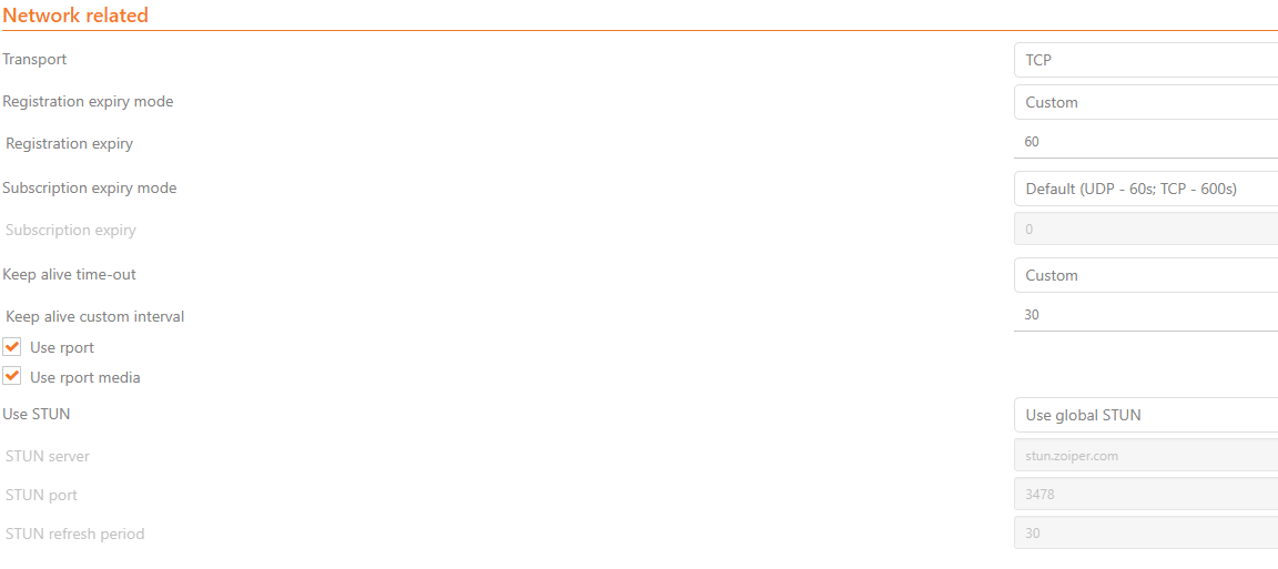 | Subscription expiry mode | Default (UDP - 60s; TCP - 600s) |